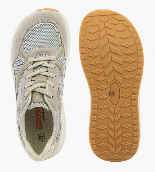 Особенностью моделей GOOSE является увеличенный мыс и эргономичная колодка. При этом внешний вид кроссовок выглядит стильно, добавляя вашему образу свежести и собранности. Обувь подойдет при повышенной полноте стопы, деформациях пальцев и суставов, при Hallux Valgus. Кроссовки в стиле спорт-кэжуал это отличный вариант для повседневных активностей в ритме города. Стопа чувствует себя свободно: пальцы не сдавлены, исчезают болезненность и дискомфорт в ногах. Плотный задник предотвращает завал стопы, а мягкий вкладыш вокруг голеностопа защищает от натирания. Анатомическая стелька поддерживает своды во время движения. Верх кроссовок выполнен из натуральной кожи и сетчатого текстиля, что позволяет стопам дышать, предотвращая потливость. Амортизирующая подошва из легкого материала ЭВА поглощает ударные вибрации, а приподнятая зона пятки равномерно распределяет давление на суставы. Протектор из резины защищает стопу от скольжения.