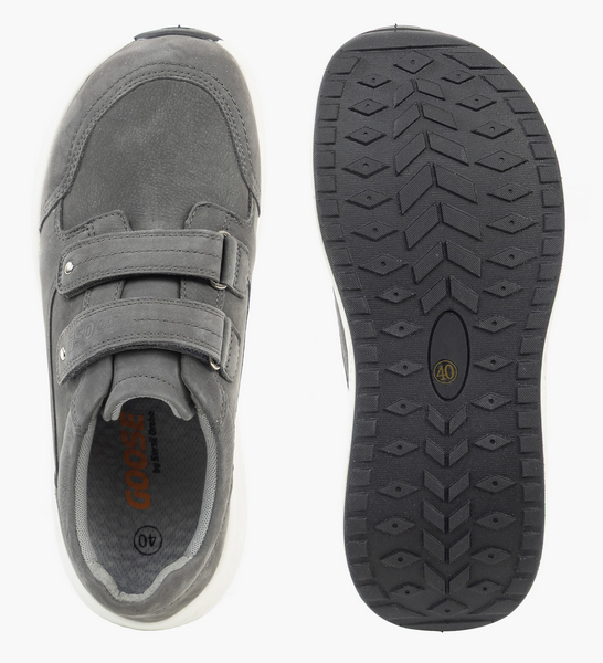 Особенностью моделей GOOSE является увеличенный мыс и эргономичная колодка. Обувь подойдет при повышенной полноте стопы, деформациях пальцев и суставов, при Hallux Valgus. Кроссовки в стиле спорт-кэжуал это отличный вариант для повседневных активностей в ритме города. Стопа чувствует себя свободно: пальцы не сдавливаются, исчезают болезненность и дискомфорт в ногах. Плотный задник предотвращает завал стопы, а мягкая подушечка вокруг голеностопа защищает от натирания. Анатомическая стелька поддерживает своды во время движения. Верх кроссовок выполнен из натуральной кожи. Благодаря воздухопроницаемой подкладке конструкция модели позволяет коже дышать, предотвращая потливость стоп. Амортизирующая подошва с легким перекатом поглощает ударные вибрации и равномерно распределяет нагрузку на суставы, существенно облегчая усталость. Протектор из резины способствует устойчивости на гладких поверхностях.